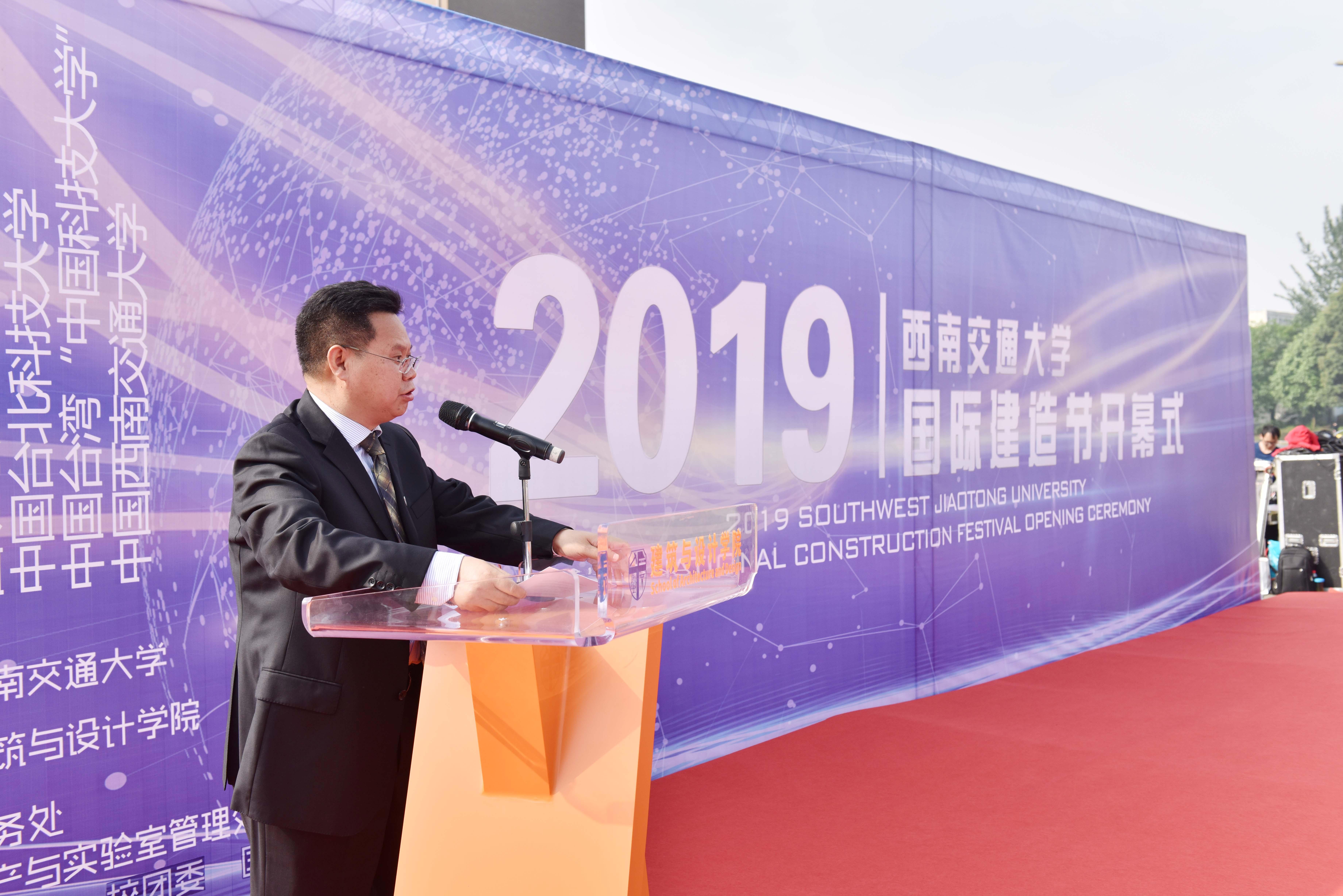 开幕式上,西南交通大学校长徐飞教授发表了讲话。他高度肯定了此次活动,并提出五点希望:一是更好地将科学(S)、技术(T)、工程(E)、艺术(A)乃至数学(M)有机结合,在建造中更切实地体现STEAM的内涵;二是在建造中更充分地彰显专业精神、创新精神、工匠精神和企业家精神;三是一如既往地坚守和秉持绿色、低碳、节能、环保理念,为建设资源节约型和环境友好型社会贡献力量;四是致力于培养高雅的审美情趣,崇尚美、鉴赏美、创造美,做一名有温度、有情怀、有风骨的建造者,;五是中外青年学子携起手来互学互鉴,自觉成为中外人文交流和学术交流的使者,为推动实现“各美其美、美人之美、美美与共”的人类命运共同体作出不懈努力。