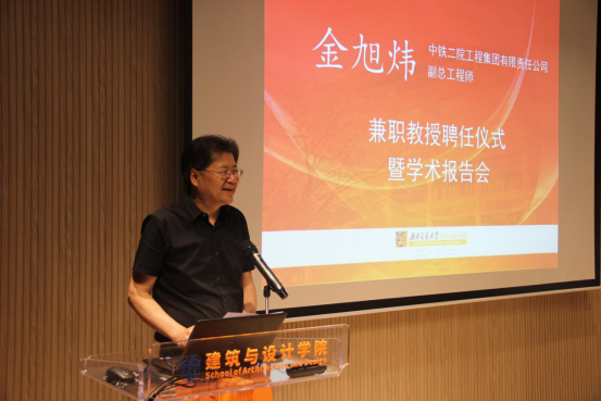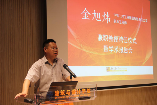 2019年6月11日,“金旭炜兼职教授聘任仪式暨学术报告会”于西南交通大学建筑与设计馆100报告厅顺利开展。副校长姚发明,院党委书记沈中伟,副院长崔叙等百余名师生代表出席了本次报告会。