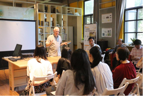 6月12日下午,Meriggi教授再一次讲座介绍到,绝不能将林盘当作城市来设计。而是要主动地发掘并阻止城市蚕食林盘,寻求林盘在当代的新可能性,吸引林盘的新居民,创造新的林盘规划、建筑、人口和产业的新模式。讲座结束后小组分组讨论确定选址范围,查看当地的卫星图、区位图并进行前期分析。
