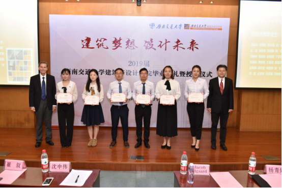 随后,典礼为优秀毕业生代表们进行表彰。党委书记沈中伟、院长Ajacob Odgaard为省级优秀毕业生代表颁发荣誉证书,副院长崔叙、党委副书记刘一杰为校级优秀毕业生颁发荣誉证书,副院长杨青娟为毕业设计优秀作品的毕业生颁发证书。获奖的同学依次上台领奖并与老师们合影留念。
