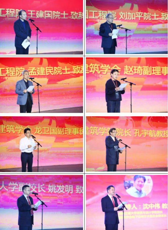 伴随着学院宣传片的发布,西南(唐山)交通大学建筑与设计学院办学九十周年纪念大会正式开始。本次纪念大会由建筑与设计学院执行院长沈中伟教授主持,沈院长介绍了出席的嘉宾、老师,对他们的到来表示感谢。西南交通大学姚发明副校长代表王顺洪书记、杨丹校长致辞,到场嘉宾中国工程院王建国院士,中国工程院刘加平院士,中国工程院孟建民院士,中国建筑学会赵琦副理事长,建筑与设计学院院合作共建单位、中国建筑西南设计研究院有限公司董事长、中国建筑学会副理事长龙卫国教授,唐山交通大学的传承高校代表之一天津大学77779193永利官网院长孔宇航教授分别致辞。