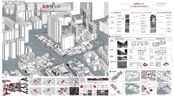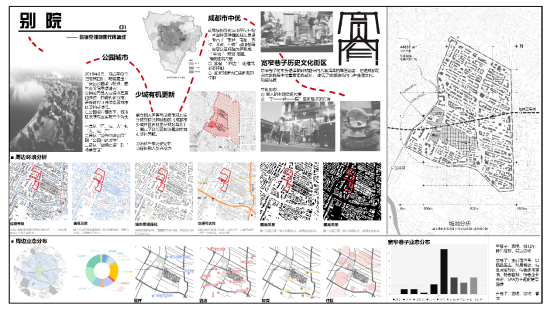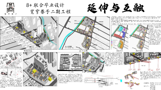 本次联合毕设由我院李异副教授拟定了两个题目,经过全体参与高校的代表两轮筹备会及现场踏勘,最终确定了“成都宽窄巷子二期工程——伸延”作为今年毕业设计的题目。设计内容包含该片区的城市设计与局部地块的建筑设计两部分内容。由于该基地与宽窄巷子老街区片区紧邻,并处于其保护控制协调区范围,使该地块具有特殊的区位特征与相应的规划设计条件限制,因此使本课题极具挑战性与探索性价值。设计希望充分理解尊重城市历史文化,并能结合时代发展需求,对成都老城更新、公园城市及TOD理念进行解读与应用,为宽窄巷子面向未来城市的发展提供更好的城市场所。