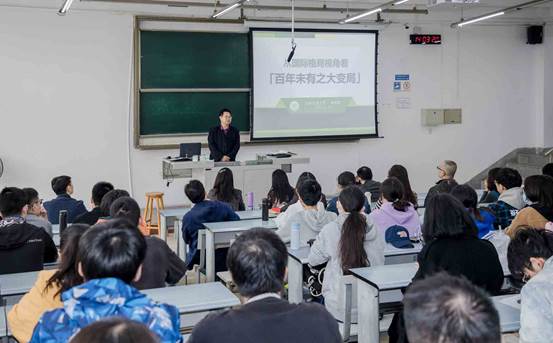 姚发明副校长阐释了习近平总书记提出“当前中国处于近代以来最好的发展时期,世界处于百年未有之大变局,两者同步交织、相互激荡”这一重大论断的背景,并从人类社会发展进程的角度,阐述了他对这一重大论断的理解。他从“深刻认识百年未有之大变局”、“大变局中机遇与挑战同生并存”、“大变局中的中国角色与中国担当”三部分为大家进行了生动的讲授。从国际力量对比之变、世界格局之变、科技革命之变、现代化发展模式之变,看到一个快速发展的中国、一个快速变化的中国、一个快步融入世界的中国、一个快步走向中华民族伟大复兴的中国。从大变局催生新的机遇、大变局充满风险挑战,他指出作为青年学子、青年党员,在这大变局中要把握好机遇,保持战略定力,坚定不移向前走,更要积极拥抱时代、把握好时代机遇、不辜负这个时代。从中国发展振兴是百年大变局的重要变化、中国的发展是大变局中的正能量,他强调要按照习近平总书记提出的增强战略思维、历史思维、辩证思维、创新思维和底线思维,打造人类命运共同体。