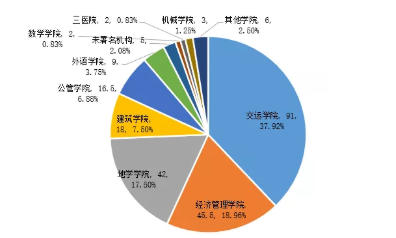 图1 西南交大二级单位发表SSCI论文占比