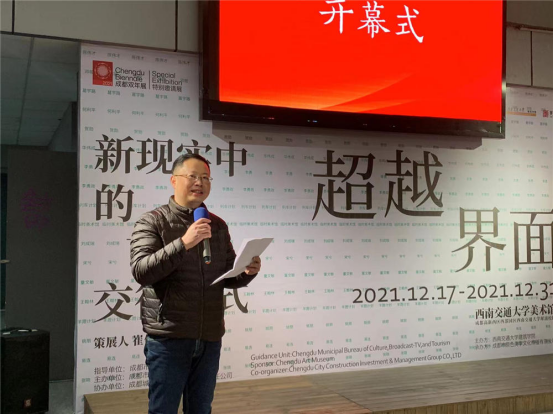 2021年12月17日下午15点30分, 2021成都双年展特别邀请展“超越界面——新现实中的艺术交往方式”在西南交通大学美术馆开幕。