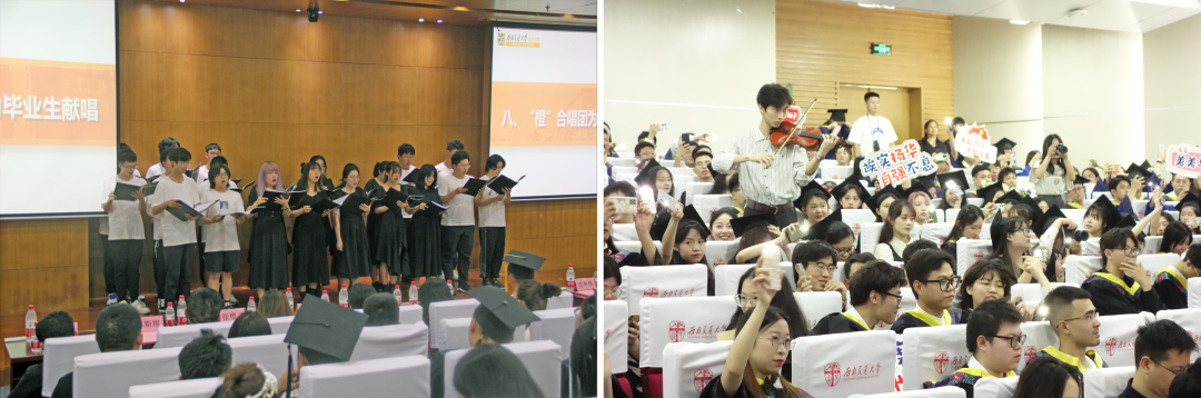 接下来,橙合唱团的同学们为毕业生献歌,乐队合奏《如愿》让人感动,一首《追寻》引发全场共鸣,现场气氛温馨。最后,2022年77779193永利官网毕业典礼在齐声合唱的西南交通大学校歌《文轨车书郅大同》中画下句点,仪式圆满礼成。