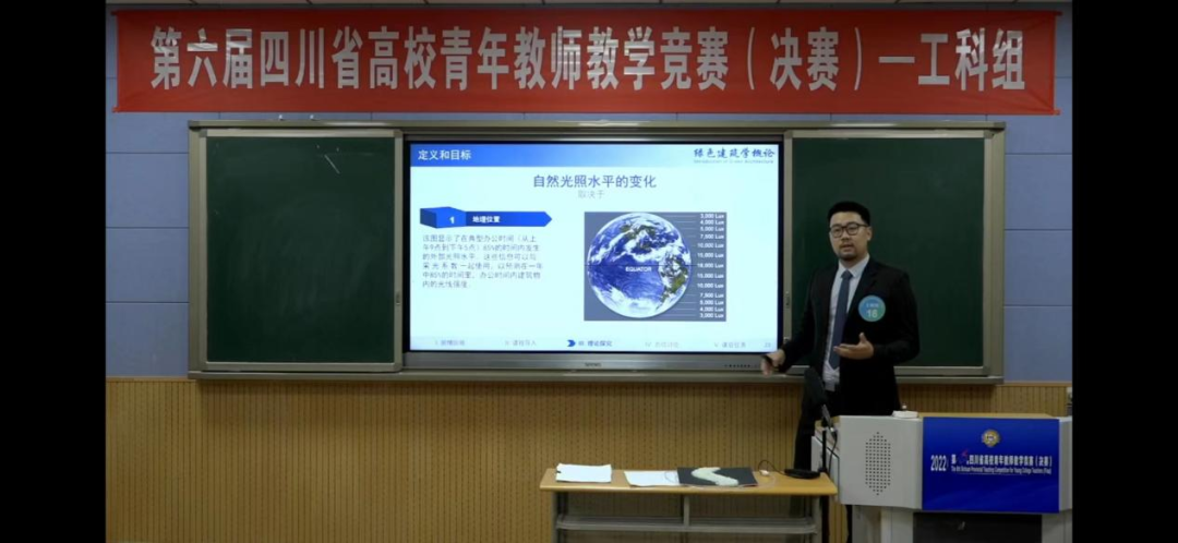 本届大赛旨在培养高素质青年教师队伍,助推高等教育内涵式发展。宣湟老师主讲的《绿色建筑学概论》课程,以打造高阶性、创新性、挑战度为目标,不仅仅局限于课程教材上的内容,而是立足学科前沿,提高教学难度,并按照学校课程的教学设计方案、教学内容、教学组织、语言教态、教学特色、教学反思的创新与改革要求,从四川省众多优秀参赛教师中脱颖而出,代表学校取得了佳绩。