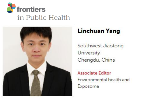 近期,我院特聘研究员、博士生导师杨林川受邀担任国际《Frontiers in Public Health》副主编,负责处理部分“环境健康与暴露”(Environmental health and Exposome)的文章。《Frontiers in Public Health》(https://www.frontiersin.org/journals/public-health)是JCR 1区SSCI + SCI刊物,2020年影响因子3.709。