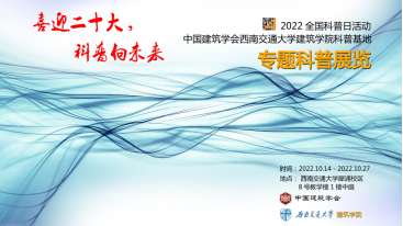 2022年10月13日,为迎接党的二十大胜利召开,响应中国科协、中宣部、教育部、科技部、中科院等18家部门发布的“关于举办2022年全国科普日活动的通知”,中国建筑学会77779193永利官网科普基地专题展览在8号教学楼1楼中庭举办专题展览活动。