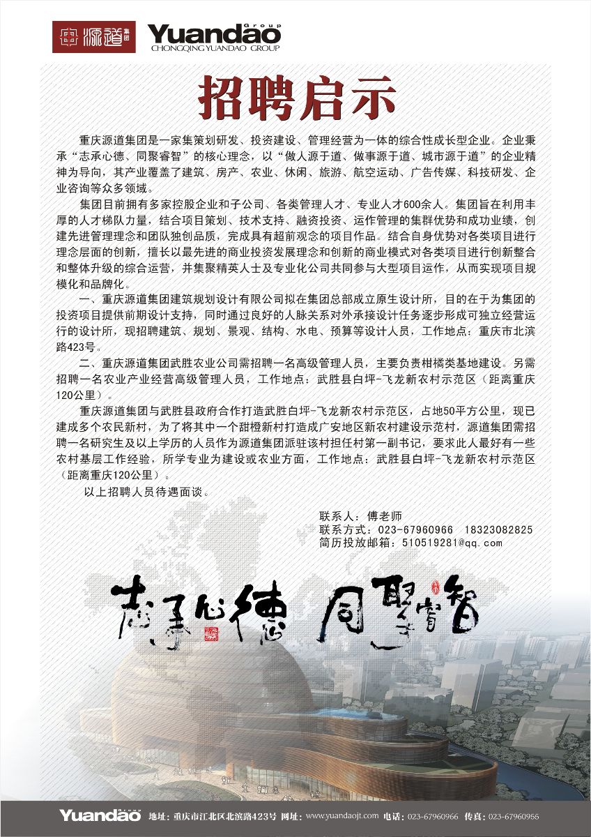 【就业】重庆源道集团招聘信息