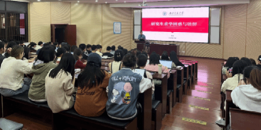 随后,李毅部长以“研究生求学困惑与破解”为题开展本次专题讲座。他首先抛出四个问题:如何为自己的研究生生涯做主?以什么心态度过研究生生涯?你的未来会是怎么样的?如何规划研究生生涯?通过与现场同学的问答交流,强调了研究生应该做到“做人+做事+做学问”相结合。