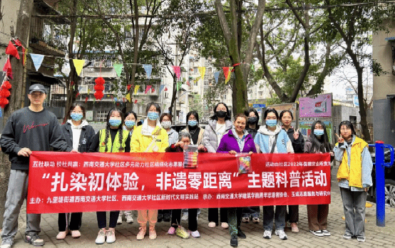 扎染是中国传统的手工染色技术之一,更是中华民族的传统文化,为了让非遗传统文化走近社区,提高居民的文化认同感和文化自信,由九里堤西南交通大学社区、西南交通大学社区新时代文明实践站主办,西南交通大学书画协会、玉成志愿服务与研究中心社区承办的“扎染初体验,非遗零距离”项目第一期主题科普活动于3月18日顺利开展。