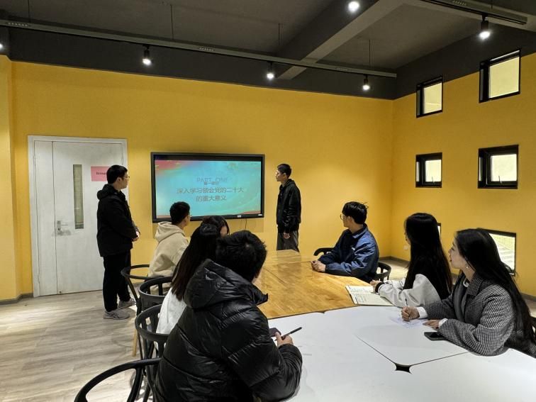 罗勋锐老师分享了有关二十大精神的学习心得以及自身学习专业知识的同时融入党团理论的学习所收获的技能和经验,劝导同学们以专业实践、专业技能助力党和国家的发展。