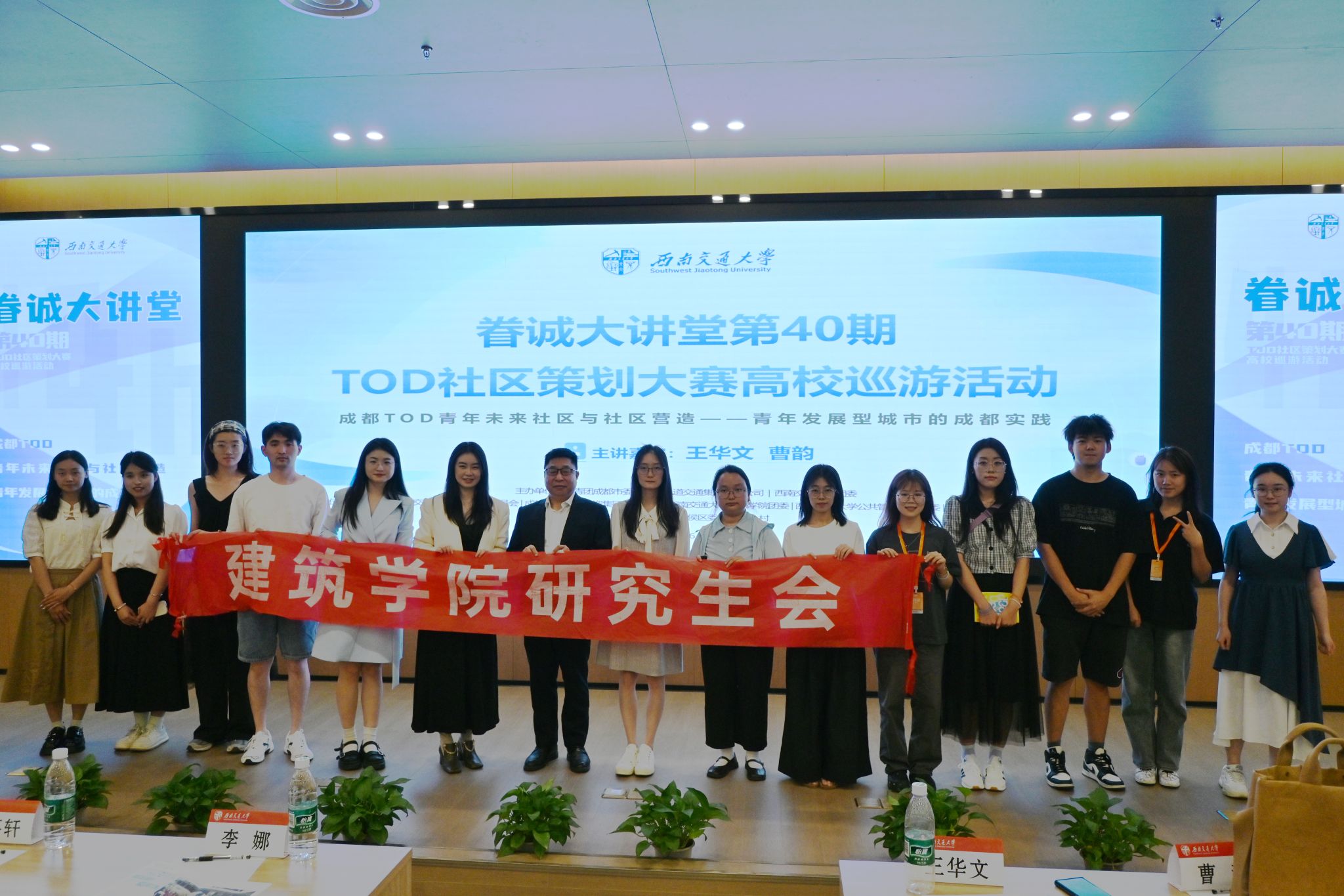 2024年6月11日晚上19:30,由共青团成都市委、成都轨道集团、西南交通大学团委联合主办的“眷诚大讲堂第40期——TOD青年社区策划大赛高校巡游活动”在犀浦校区图书馆1号报告厅顺利举行。