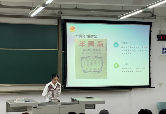 一首激情昂扬的共青团团歌奏响,随后,主讲田方舟老师向同学们具体介绍了中国共青团的性质、职能、标志、工作制度,以及团籍注册制度和团课规则等。