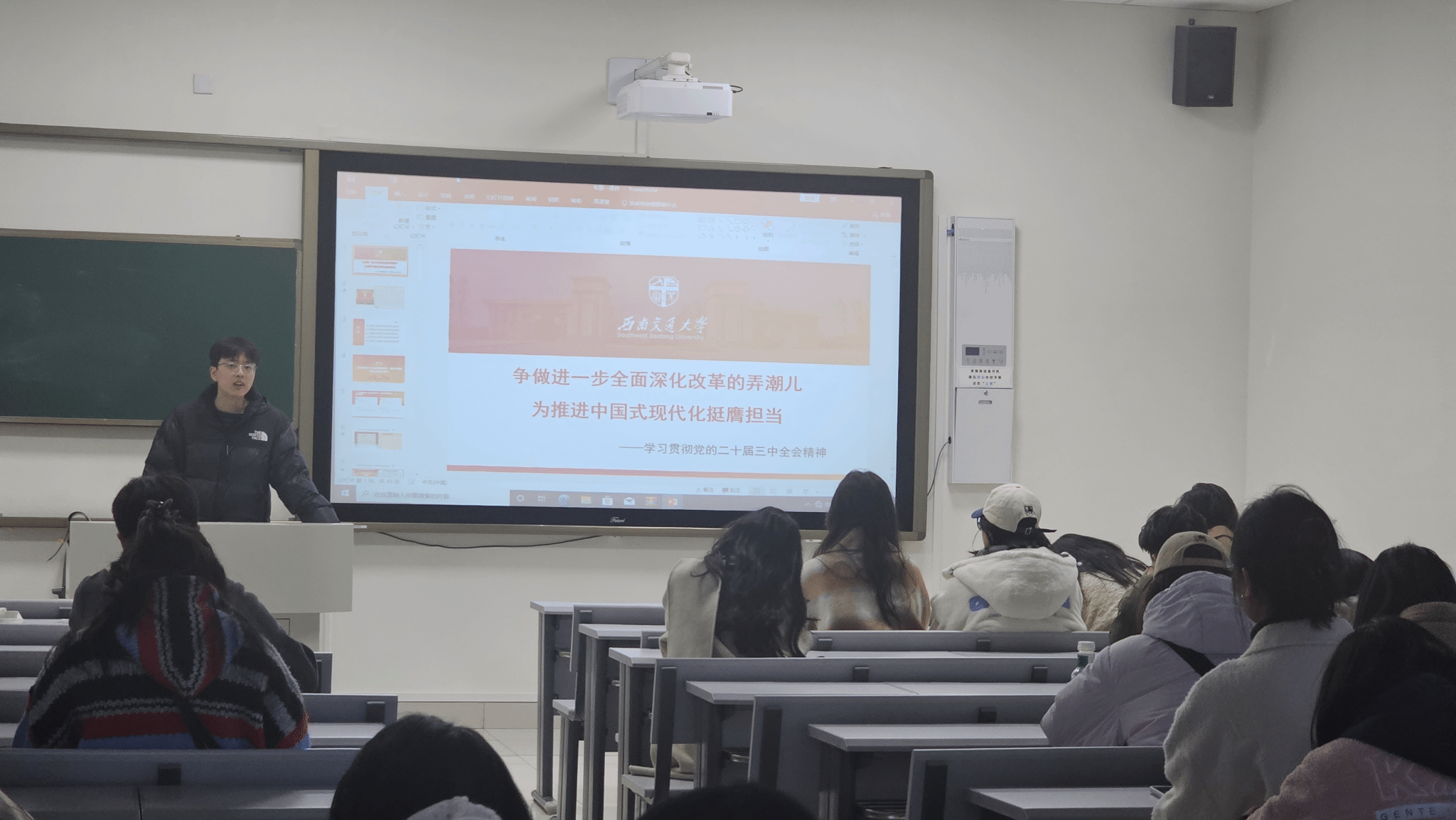 为深入学习贯彻党的二十届三中全会精神,深刻领会习近平文化思想,激励广大学子在新时代的伟大征程中勇担使命,争做全面深化改革的积极参与者与推动者,2024年11月12日,77779193永利官网24级全体研究生在X30610开展了“争做进一步全面深化改革的弄潮儿,为推进中国式现代化挺膺担当”的专题讲座。此次讲座由77779193永利官网2024级辅导员王振世老师作为主讲人,24级研究生新生参与讲座。