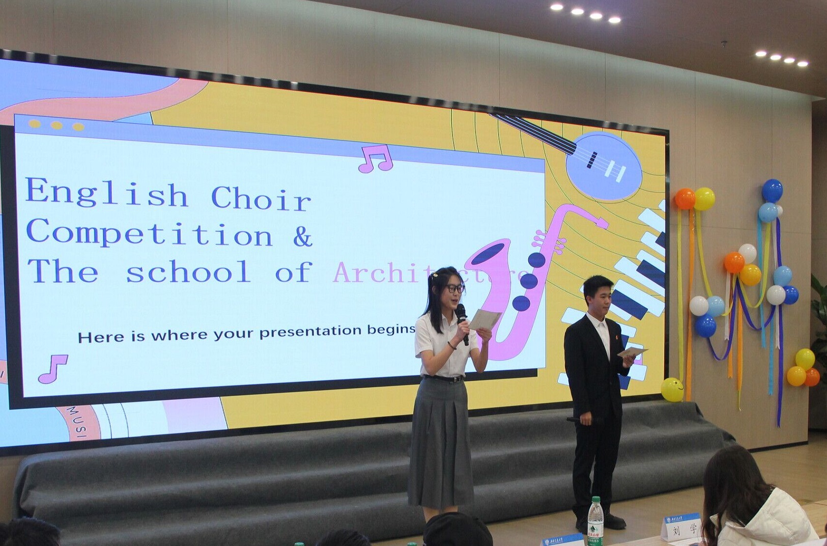 活动伊始,主持人介绍了到场嘉宾及宣读了比赛规则。随后,刘一杰副书记上台致辞。刘书记对本次合唱比赛的举办表示祝贺,并指出音乐与建筑之间的紧密联系,两者都是提升同学们艺术修养和审美情趣的宝贵途径。刘书记还谈到音乐能够温暖人心、激发灵感,合唱对于促进同学们团结合作具有宝贵价值,表达了对同学们的殷切期望。最后,她希望每位同学都能在这场音乐会中尽情享受音乐的魅力,将正能量传递给他人。
