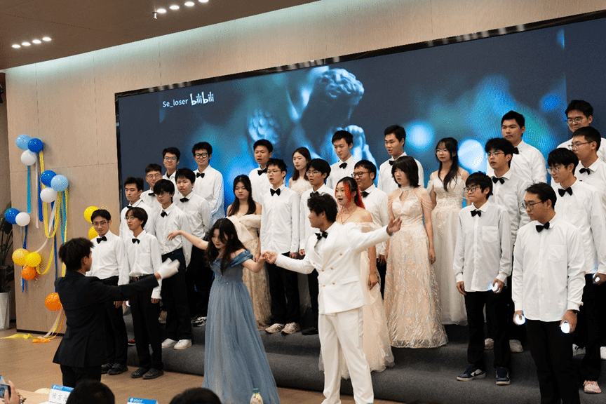 比赛中,2024 级本科生组成的 6 支队伍展开了激烈角逐。各班在曲目选择和表演编排上充分展示了创意与创造性,《Legend of Everfree》里着飘扬着青春律动,《Another Day of Sun》以其活力四射的曲风鼓舞观众充满希望,《Love Story》用动听的旋律诉说童话浪漫,《Lemon Tree》带来了轻松氛围,而《Something Just Like This》则以澎湃的节奏唤醒我们内心深处对美好事物的渴望,参赛者们标准流利的口语表达和朝气蓬勃的精神风貌在这些曲目中得到了充分展示。