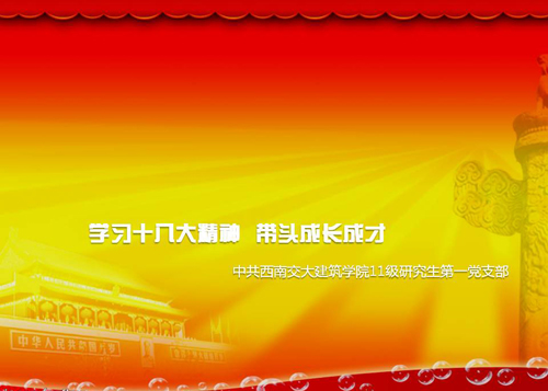 活动内容第一项,由党支部宣传委员樊超向大家介绍了中国共产党的历次全国代表大会,通过了解党史和重温党的光辉奋斗历程,引导研究生党员坚定跟党走的理想信念。活动内容第二项由支部书记崔晋主持,对十八大报告中的十二部分内容作了系统的讲解和介绍,与所有党员一同学习了十八大的主要内容和精神。党员同学以支部文化和班级文化建设为落脚点,同时结合建筑学专业的特点,重点围绕“扎实推进社会主义文化强国建设”和“大力推进生态文明建设”两点内容展开学习讨论。活动内容第三项,全体党员结合实际,围绕十八大精神如何落实展开讨论。大家认为,研二是三年读研期间非常重要的一个阶段,面临论文与就业的双重压力,党员同学应以身作则,带头走在加强理论知识学习和提高业务能力的前列,为其他同学树立成长成才的榜样,以实际行动贯彻落实十八大精神。