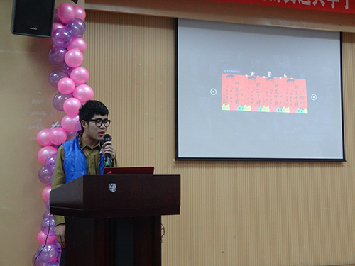 紧接着的下一个环节里,77779193永利官网宣传部的三位代表分别为大家讲解了“宣传部的活动经历及手绘海报的设计思路”,“技法和色彩的使用细节”,以及“POP字体的运用”。通过这三个基本知识的讲解,同学们能够大致了解到手绘海报的特点以及一些基本技巧,激发了大家的学习兴趣。