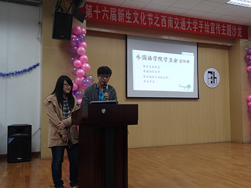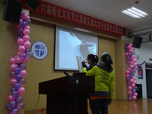 2013年12月6日晚19:00,西南交通大学“第十六届新生文化节”系列活动之手绘宣传主题沙龙在八教学术报告厅成功举办。