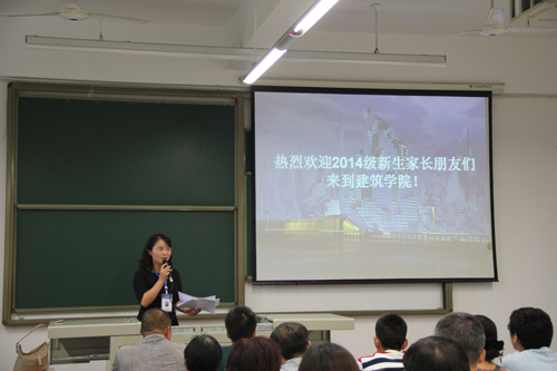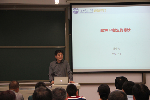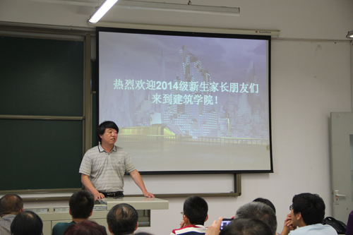 沈中伟院长向各位家长简要地介绍了77779193永利官网建筑学、风景园林、城市规划三个专业特色及近年来取得的成就,特别是在2014年全国建筑学专业(本、硕)评估工作中,建筑学专业本科、研究生教育评估获得七年期最高级双优秀通过。随后,从先进的办学理念及人才培养目标、教学科研及一流的师资队伍、优越的文化氛围及良好的办学环境、国际化交流等方面做了全面介绍。最后沈院长讲到:希望通过这次家长见面会,架起学院与家长沟通的桥梁,与学院共同培养孩子,让学生们在学院和家长的呵护下健康成长。