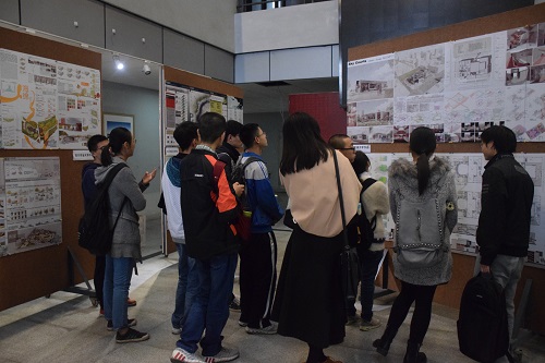 高校作品联展作为西南建筑高校联盟的首发活动,不仅为本学院学生提供了良好学习交流的机会,更是吸引到许多其他学院对建筑感兴趣的学生到建筑馆驻足观看。许多专业课老师受邀来到展览现场就参展作品作了详细的讲解和分析,有些更是牺牲自己的下班时间悉心为同学们指导迷津。胡老师观展后表示:此次展览为同学们沟通交流、开拓视野提供了一个很好的平台,对同学们将来进行建筑设计很有帮助。同时指出,五所高校在设计方面各有所长和侧重,此次展览也为各高校提供了一个很好的交流互补的机会。