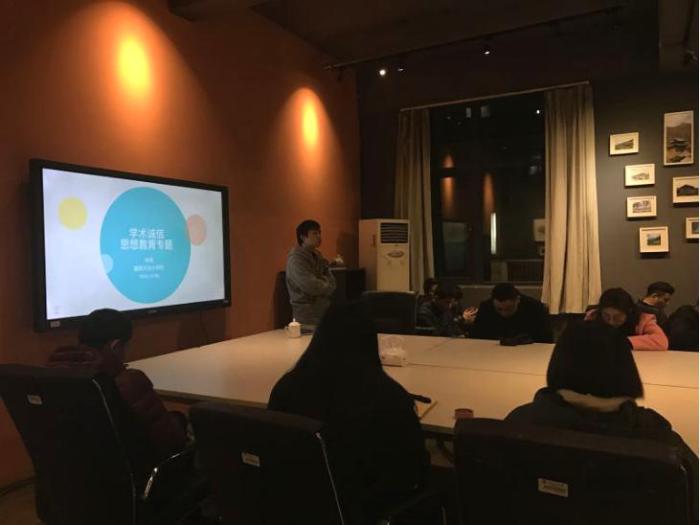 12月08日晚8时,由我院学生工作办公室主办,院研究生会承办的“学术诚信思想教育”专题活动在建筑馆建筑与文化中心顺利举行。研究生辅导员林茂老师作为主讲人,强调了学术诚信思想在研究生三年学习生涯中的重要性,要杜绝学术不端现象的发生。另外,他还强调了考试诚信等问题。