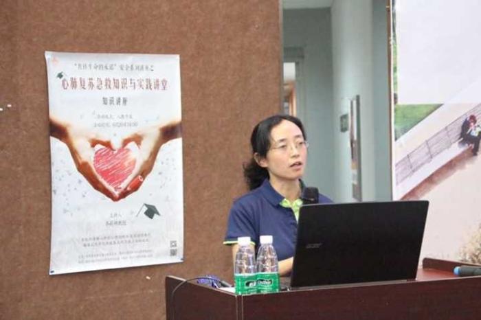 首先由四川大学华西医院特邀嘉宾乔莉娜教授讲解心肺复苏相关知识,使大家对心肺的生理结构和复苏法的要领有了基本了解。然后同学们通过现场准备的模拟人进行实践练习,进一步掌握心肺复苏法的操作技能。最后由副护士长杨光亲自演示,使同学们关于心肺复苏的知识得到进一步巩固。