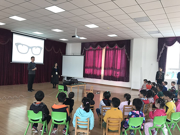 当日阳光灿烂,学院研究生会外语部的两位主持人“眼镜哥哥”和“玲玲姐姐”先询问在座的小朋友——大家都是乘坐什么样的交通工具来幼儿园的。小朋友们争先恐后地举手回答,场面十分热闹。随后,“眼镜哥哥”以走路上学作为切入点,教导小朋友们:过马路时,要注意往来车辆和信号灯,确保周围环境安全后再通过。“玲玲姐姐”则带着小朋友们认识了自行车、公交车、汽车、出租车等交通工具的英文单词,小朋友们大声地跟读,在玩耍的同时也认识了新的单词。接着,“眼镜哥哥”为小朋友们介绍了磁悬浮列车,小朋友也较快地就认识了这个新的交通工具。