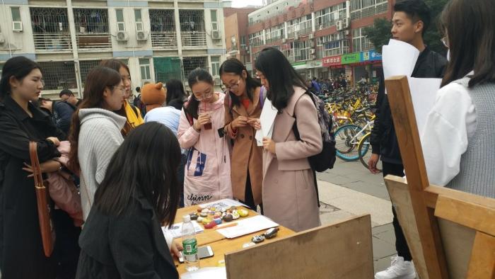 活动当天,志愿者带着亲手涂鸦的石头来到二食堂和四食堂门口进行爱心义卖,过往的路人、老师、同学都围上去积极关注与询问。多姿多彩的石头们吸引了不少的同学驻足观赏:憨态可掬的熊猫列车、呆萌可爱的小黄人、承载着无数童年记忆的蓝胖子哆啦A梦……很快,石头们就被路过的同学们买走了。
