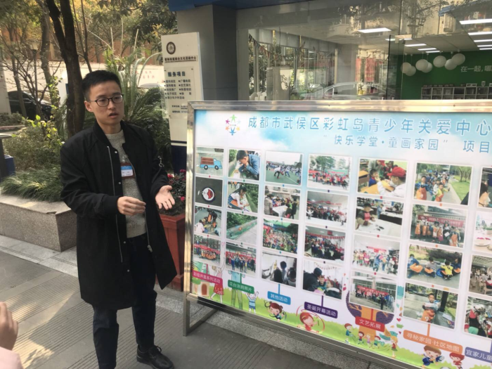 2017年12月9日,西南交通大学建筑与设计学院匠心筑梦就业服务团队和研究生们来到武侯区晋阳社区进行“研途”就业指导活动。本次参观的企业是成都“彩虹岛”青少年关爱中心,彩虹岛的负责人是建筑与设计学院2017届毕业研究生彭海松。一名研究生,选择到社区来进行工作,究竟是什么吸引着他?每个同学都带着疑问走进晋阳社区,近距离了解彩虹岛。