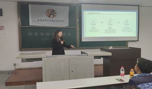 首先,由班联理事长方任杰做开场白,对活动的举办目的进行了简要说明,并介绍了本次活动的朋辈导师陶汪洋。接着,朋辈导师陶汪洋发言,她以设计专业学习与大学生涯规划为主题,以学习为重点,指出同学们在学习过程中应多看多问多记。紧接着,她向大一新生推荐了常用的设计相关网站和软件,与会同学更加深入的了解了朋辈导师的学习经验,收获良多。随后,她从大学社团经历谈起,讲述了自己从入学到现在的成长过程,从心路历程到实际作法,向大家展现了更加全面的自己。她又以出国和保研为切入点讲述了出国和保研的准备流程,并指出时间规划在这方面的重要性。在最后的互动环节中,朋辈导师陶汪洋对参与交流同学的问题进行了一一回答,给予了新思路以及更高层次的见解,同学们受益匪浅。