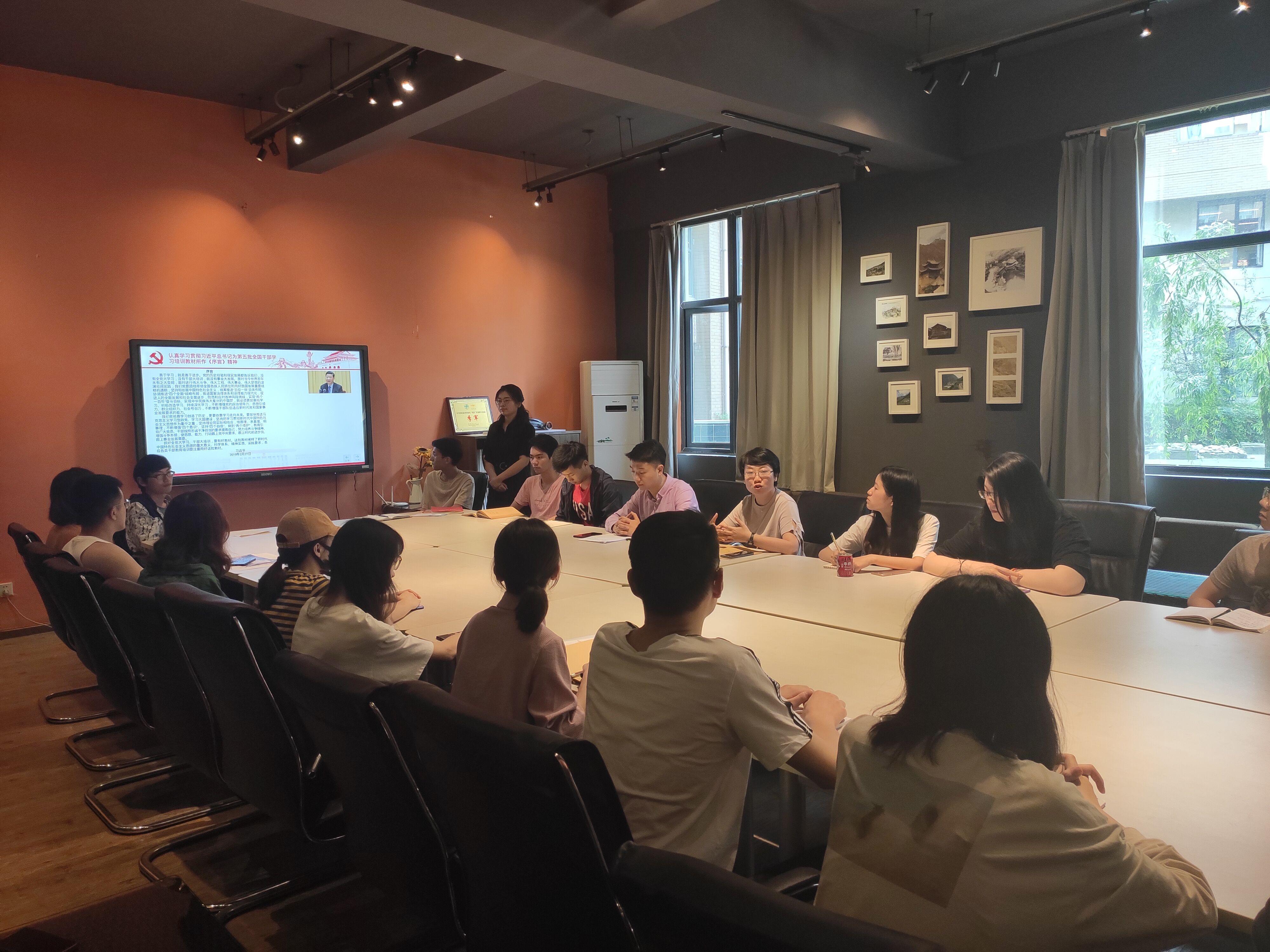 随后,党支部书记王雪带领到场的全体党员学习了《序言》相关精神,《序言》指出善于学习,就是善于进步。党的历史经验和现实发展都告诉我们,没有全党大学习,没有干部大培训,就没有事业大发展。实现“两个一百年”奋斗目标、实现中华民族伟大复兴的中国梦,就必须更加崇尚学习、积极改造学习、持续深化学习,学习始终是做好党支部建设工作的坚实基础。紧接着,支部成员结合自身对学习内容进行讨论交流。由金宇航同志带头发言,以一次赴重庆的政治学习之旅为契机,深入浅出地表达了学习的重要性与现实意义。有了这样一个精彩的开场之后,支部其他成员纷纷勇于发言,表达自己对于这次会议学习内容的理解,现场气氛热烈,情绪高涨。