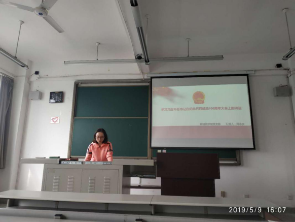 2019年5月9日下午,西南交通大学建筑与设计学院研建筑学学硕党支部在学院X8539召开了主题为“学习习近平总书记在纪念五四运动100周年大会上的讲话”主题党日活动。