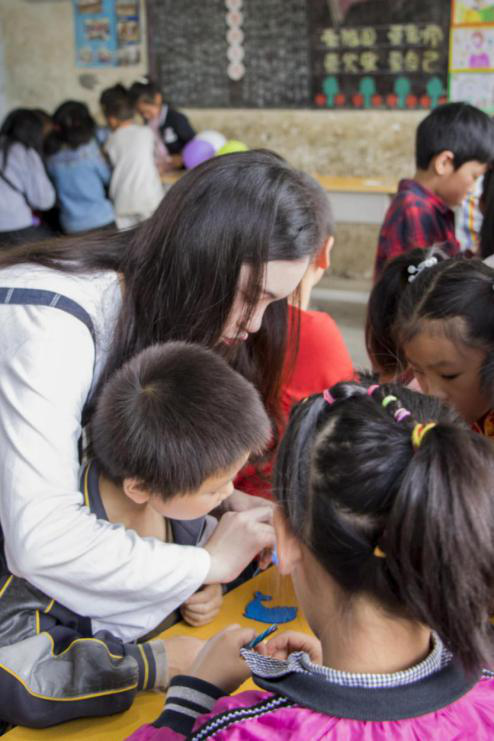 在本次志愿活动中我们为孩子们带去了美术教材和精美的手工工具,以及相应的彩色画笔、油画棒、气球等学习娱乐工具。活动期间,我们从与自身专业相关的艺术方面,为孩子们讲述日常生活中的美,我们从一花一木讲起,与他们共同发现存在于我们身边的美,在孩子们的幼小心灵埋下向往美好的种子。此外,我们还将孩子们分成不同的小组,给每个组分发了一个精美的手工制作任务,并要求孩子们在没有老师带领的前提下,通过小组内合作的方式去完成手工制作。制作的过程并不是一帆风顺,每个小组都遇到了或大或小的问题,这时我们就引导孩子们去独立的思考、大胆尝试,最终大家都完成了手工的制作。