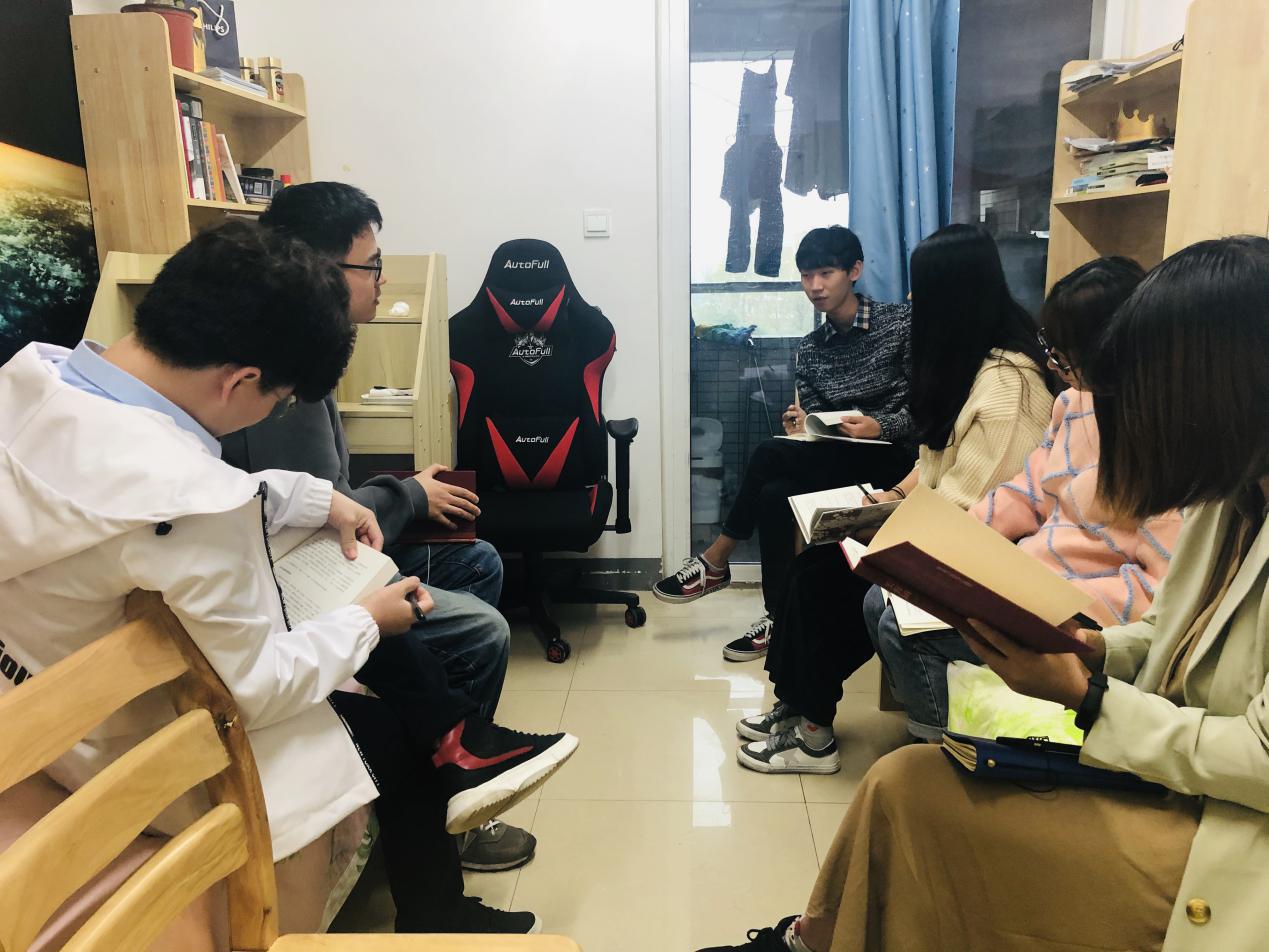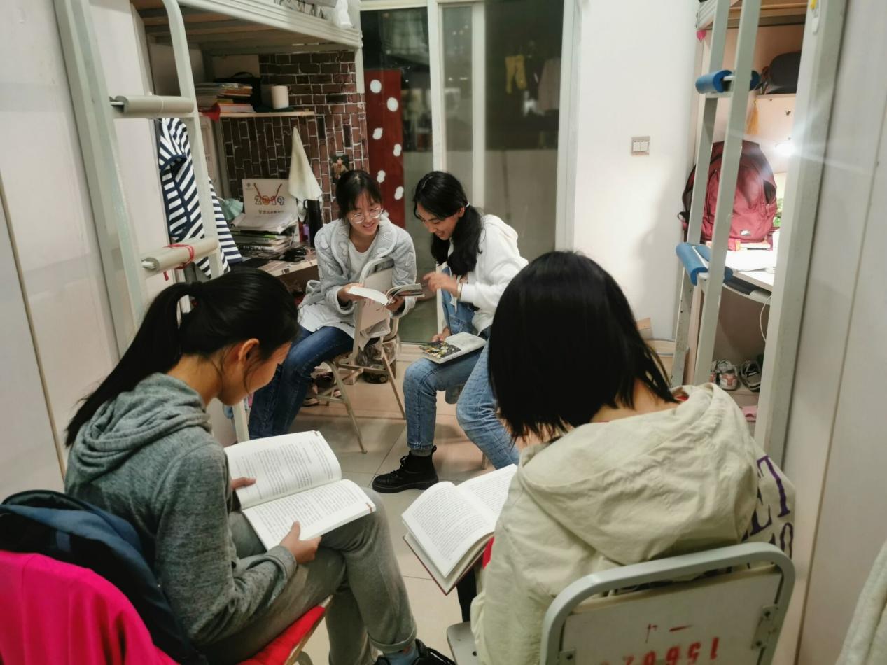 我院各级团支部纷纷响院应团委号召,各团支部书记积极组织学生拿起书本,在宿舍内探讨学习。同学们就一本好书,相互讨论,分享彼此的心得体会,不断加深对书本内容的理解。