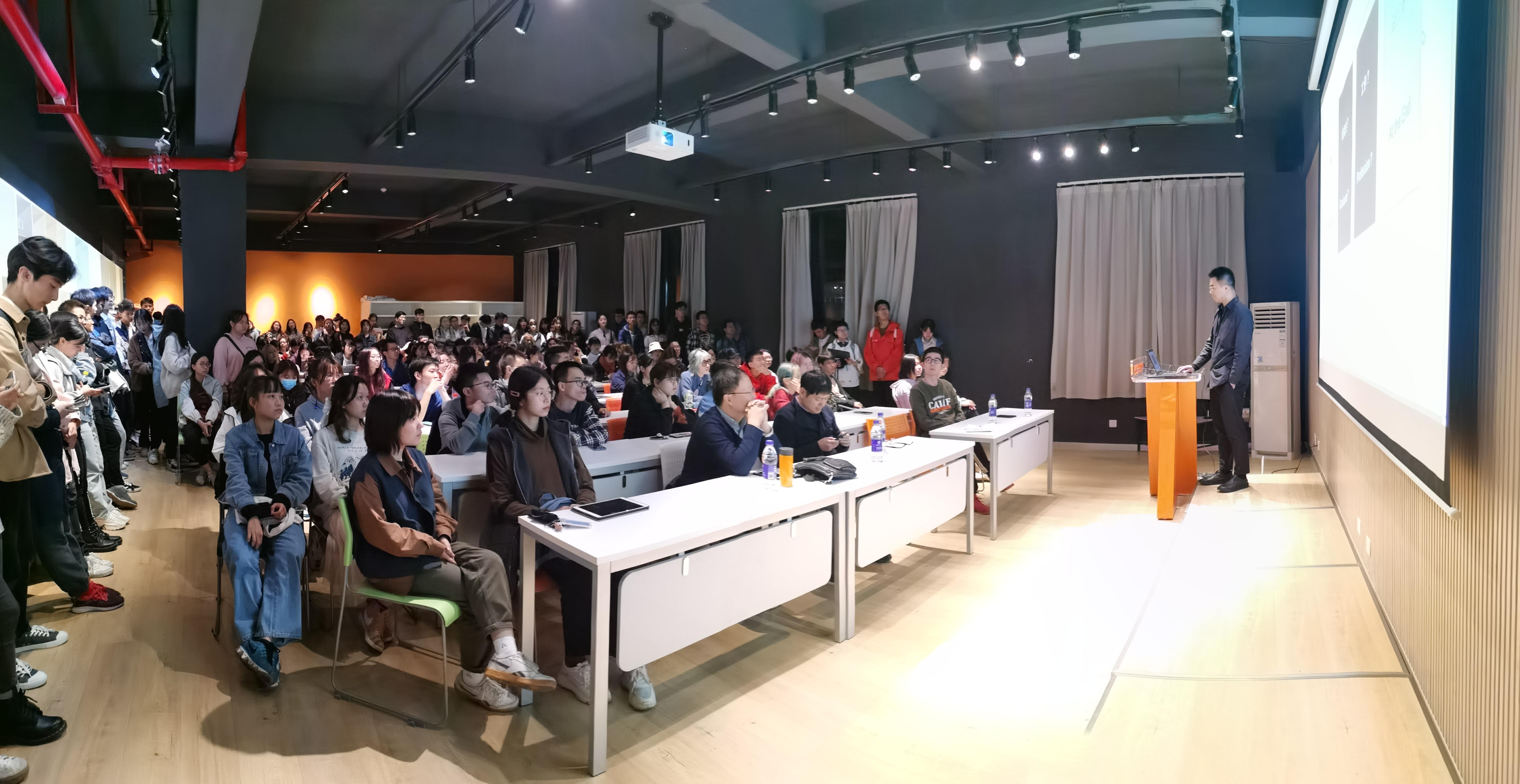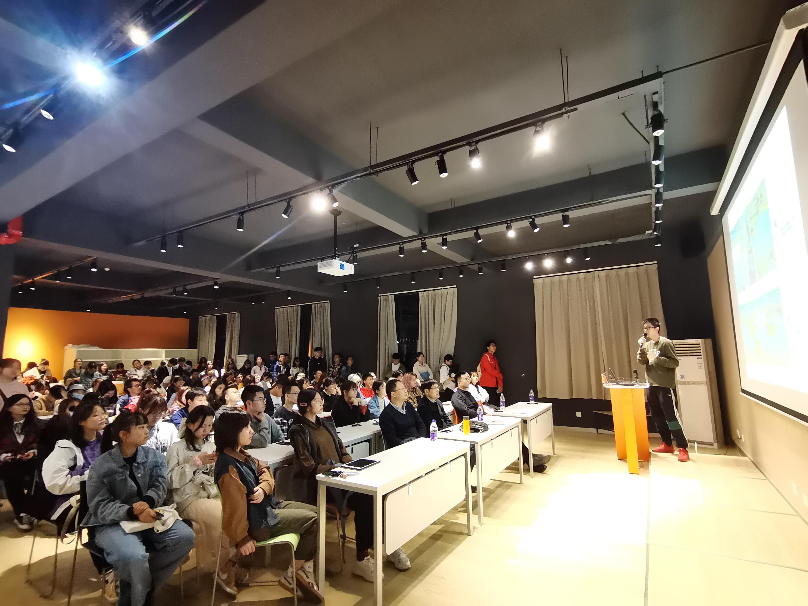 交流活动开始,主持人崔老师向同学们介绍本次讲座的两位主讲人。首先分享的是杨屹学长,他为我们介绍了专业学习需掌握的技能以及各个阶段应注意的问题,并发表了自己对于读研及工作后有关自身发展的看法,其中着重强调了懂得感恩、谦逊好学、不断阅读、广泛涉猎等能力与品质的重要性。随后是赵浩宇学长为我们讲解了对留学工作、设计工作、教育工作、文化创新等多方面的态度、做法,并着重带学生了解了城市设计,展示了许多精彩实例与图片。场上气氛活跃,更是有许多同学积极提出自己的问题,与学长们进行语言和心灵的交流,也使本次活动更具吸引力。