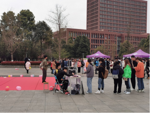 在我院学生会的精心筹备下,2021年3月7日下午14时,女生节线下嘉年华活动在西南交通大学图书馆东广场正式举行。活动现场包括游戏、心愿区、表演区三大区域。游戏区包含六个与主题相关的小游戏,通过参加游戏集章的方式增强到场同学的参与感。活动现场的女生们可通过在心愿卡填写自己的心愿的方式许愿。为增强活动现场的氛围,此次活动还邀请了校内优秀社团进行节目表演。晚20时,女生节线下活动圆满结束。