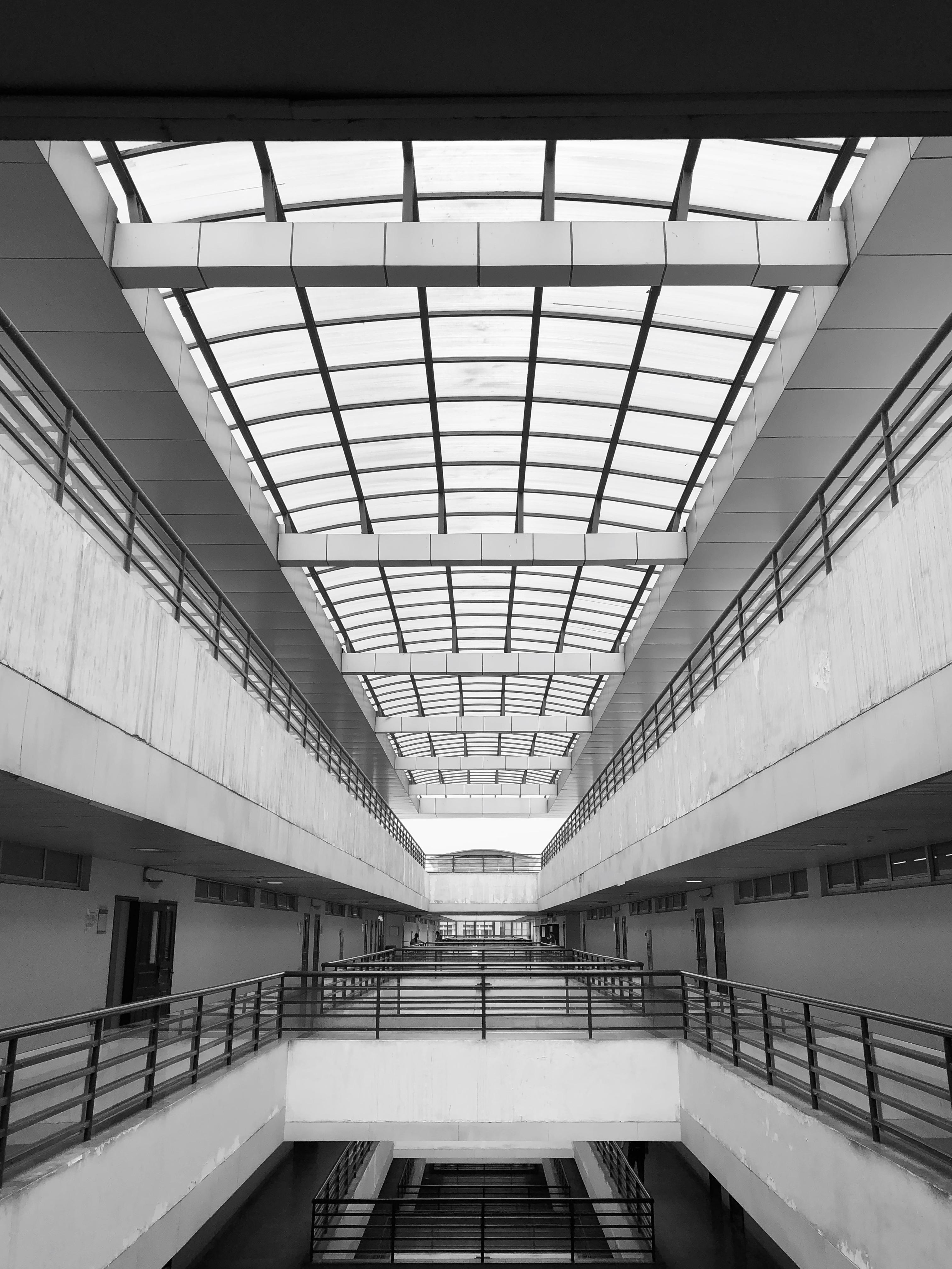 作品描述:站在1号教学楼的一侧向尽头望去,对称的楼道和栏杆形成了极为有秩序的美,也代表着交大教学工作的井井有条和严谨治学的精神。