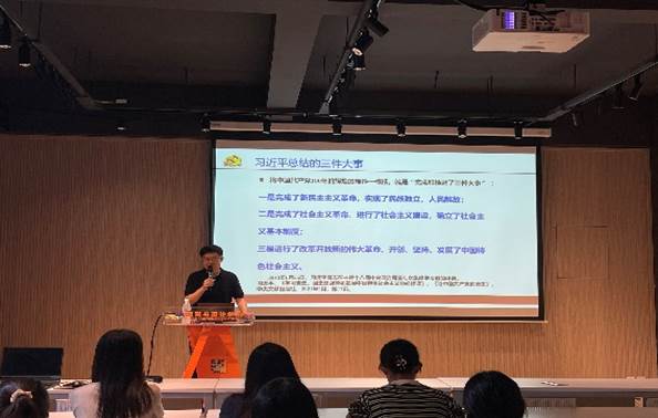 随后,崔教授强调要深入学习贯彻习近平总书记重要讲话精神的深远理论意义和重大实践意义,时刻不忘我们党一百年来走过的路,永远保持革命加拼命的精神,永远保持谦虚谨慎、戒骄戒躁、艰苦奋斗、勤俭节约的传统;永远保持不畏强敌、不惧风险、敢于斗争、敢于胜利的勇气,继承和发扬中国共产党在百年奋斗中形成的伟大建党精神。紧接着,崔叙教授结合历史、自身经历、规划专业等介绍了新民主主义革命、社会主义革命和改革开放的伟大革命。崔叙教授着重提到作为一名城乡规划的研究生,在研究实施时,一定要结合实际,处理好人口、资源、环境的关系,建设和谐社会。