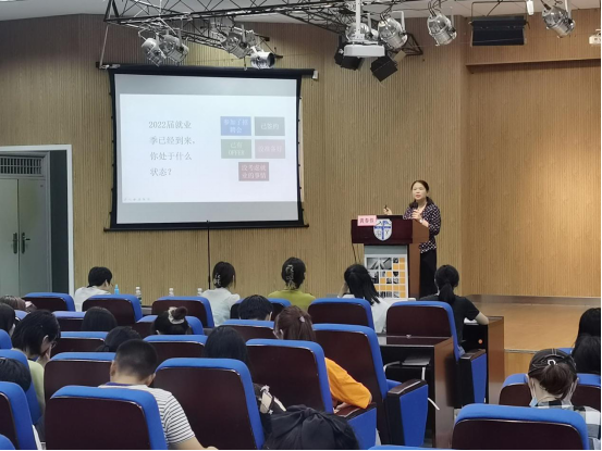 接下来关于“哪些人考研?”、“哪些人还没有做任何规划?”的两个问题提出了很好的建议。了解了大概后,为同学们分析了当下2022级就业季来临下毕业生所处于什么状态,使同学们得到了很多的启发。