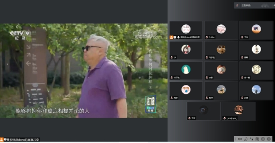 首先,主持人罗铮蒸就抑郁症和抑郁情绪向同学们进行了总体介绍,并指出现在许多人都处于心理亚健康状态,可见调节好心理的重要性不容忽视。随后,以观看视频——中央电视台CCTV9纪录片《我们如何对抗抑郁》的形式,向大家介绍了抑郁症和抑郁情绪,让大家对两者的特点和区别有了进一步的了解。之后,针对自身情况与观后感悟的问题,同学们进行了踊跃的发言,讨论了关于抑郁症的一些困惑,以及最近一段时间遇到的不良情绪事件。