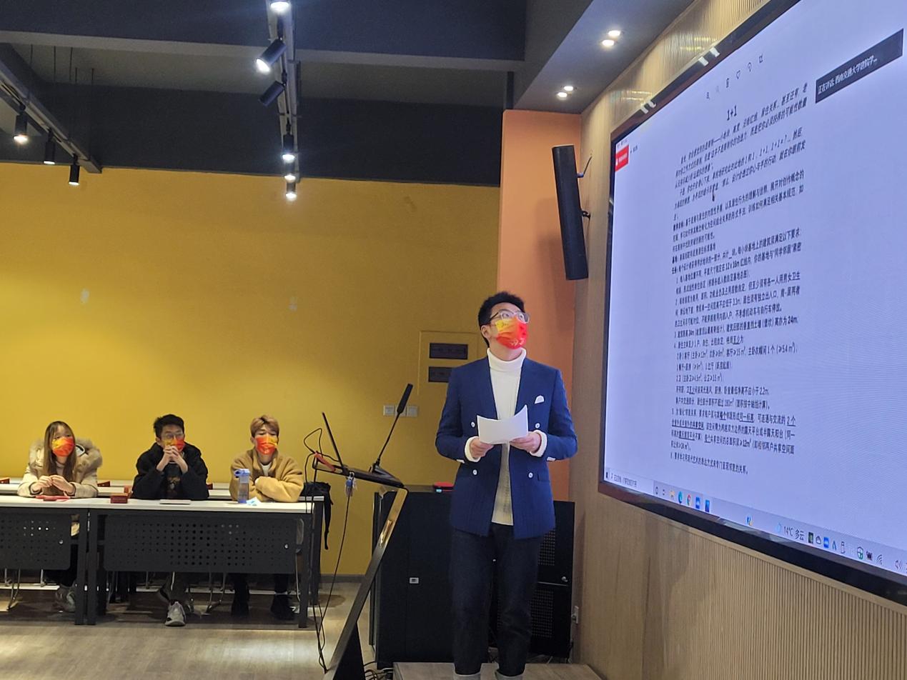 建筑与设计学院学生代表王睿韬同学也分享了自己在学习上的感悟与体会。他从自己的设计作业入手,分享自己的创作理念、设计概念、逻辑塑造,着重阐释如何从设计的迷茫走向透彻思考这一问题。王睿韬同学谈到,建筑设计不仅需要思考人与建筑的关系,更要注重人与人之间的联系。最后,他真诚地希望各大建筑高校同学间能有更多的交流,有更多的合作,为建筑事业再添光彩。