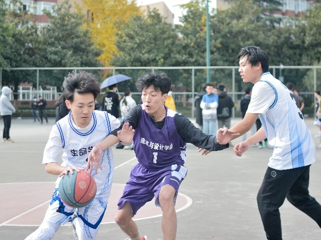11月22日中午,篮球联赛开幕式在九里校区篮球场举行。总裁判宣布开幕后,开始了八院篮球赛的开局比赛。高年级赛区的建筑与设计学院和生命科学与工程学院进行了首场比赛,经过四小节的较量,我院以52:53的微弱差距惜败生命科学与工程学院。