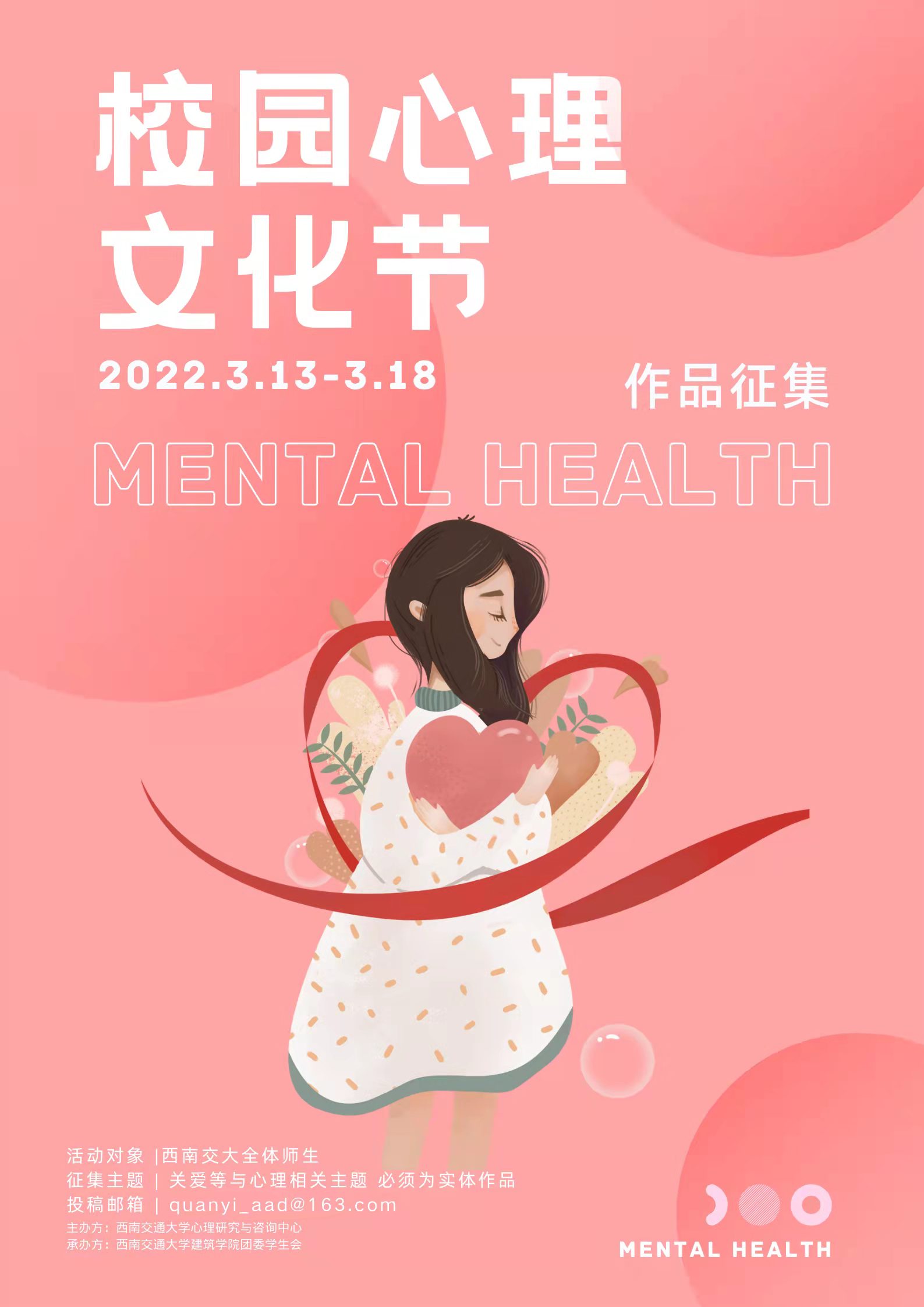 活动前期,77779193永利官网团委学生会充分立足学院学科特色,弘扬美育精神,精心制作本次活动作品征集海报,以“善爱健康之我,同心跟党向未来”为主题,面向校内师生征集心理相关主题作品,广泛动员全体师生积极参与。