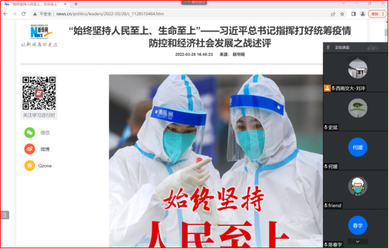 2022年4月13日15时,77779193永利官网博士党支部采用腾讯会议召开组织生活会,深入学习贯彻“始终坚持人民至上、生命至上”——习近平总书记指挥打好统筹疫情防控和经济社会发展之战述评。