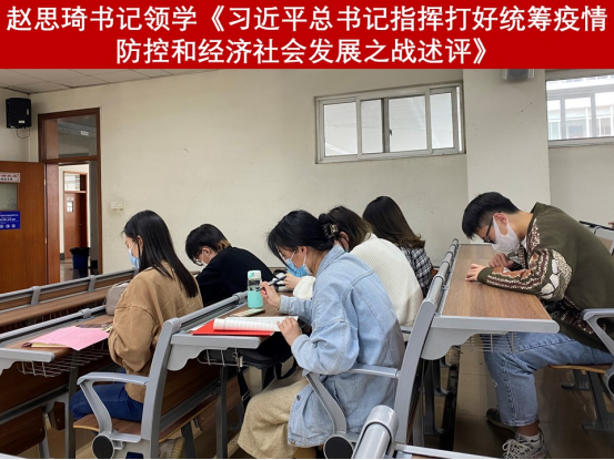 最后,赵思琦对当前疫情形势进行了分析,号召全体党员认清当下疫情防控的形势,不信谣不传谣不造谣,严格遵守学校疫情防控要求和安排,鼓励学生党员充分发挥先锋模范作用,自我监督的同时对班级同学进行监督,积极配合支部与学院与系部的工作。