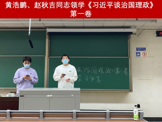 接着,支部成员在黄浩鹏、赵秋吉同志的带领下集体学习《习近平谈治国理政》第一卷。黄浩鹏同志介绍了第一卷主要内容,赵秋吉同志带领大家重点学习了《习近平谈治国理政》第一卷“坚持和发展中国特色社会主义”“建设社会主义文化强国”以及“丰富‘一国两制’实践和推进祖国统一”。《习近平谈治国理政》第一卷生动记录了党的十八大以来,以习近平同志为核心的党中央,带领全党全国各族人民开启了改革开放和现代化建设的新征程。