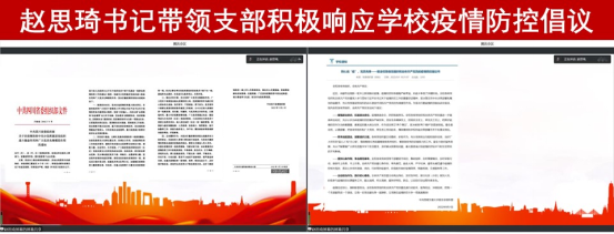 议题三是学习《关于在疫情防控中充分发挥基层党组织战斗堡垒作用和广大党员先锋模范作用的通知》。为更好的贯彻落实疫情防控工作要求,凝聚支部力量,支部书记赵思琦同志带领研风景园林党支部深入学习《关于在疫情防控中充分发挥基层党组织战斗堡垒作用和广大党员先锋模范作用的通知》,积极响应学校疫情防控倡议。并号召全体党员在疫情防控期间以身作则,严守纪律,自己做好疫情防控的同时,带动身边同学配合学校各项防疫工作,发挥党员的先锋模范作用,积极参与疫情防控志愿服务工作。